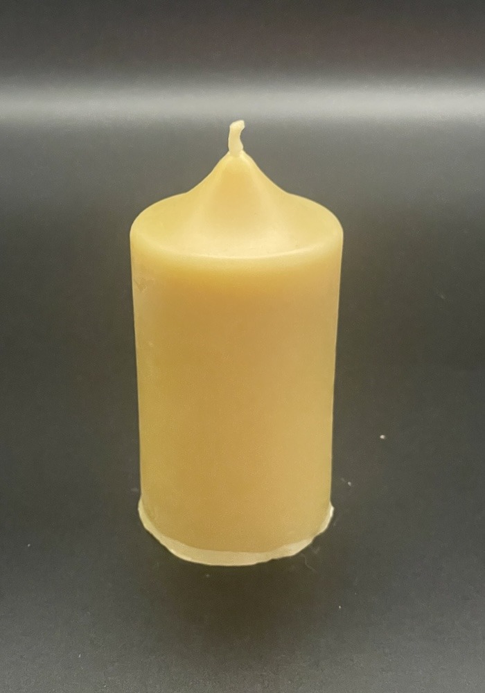 Diese Bienenwachskerze Stumpen eignet sich besonders gut für Gestecke sowie für den Adventskranz.
