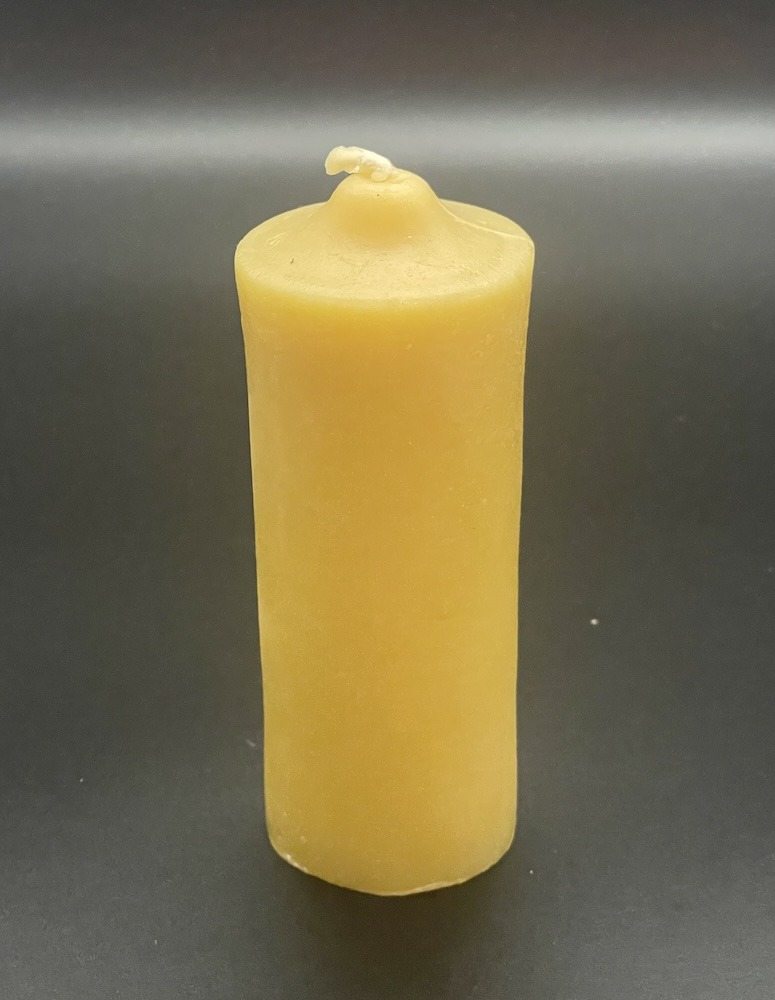 Diese Bienenwachskerze in Stumpenform eignet sich besonders gut für Gestecke sowie für den Adventskranz.